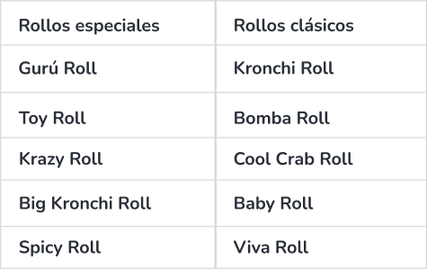 Por la compra de un (1) rollo especial, te llevas el segundo (2) gratis de nuestra selección de rollos clásicos: