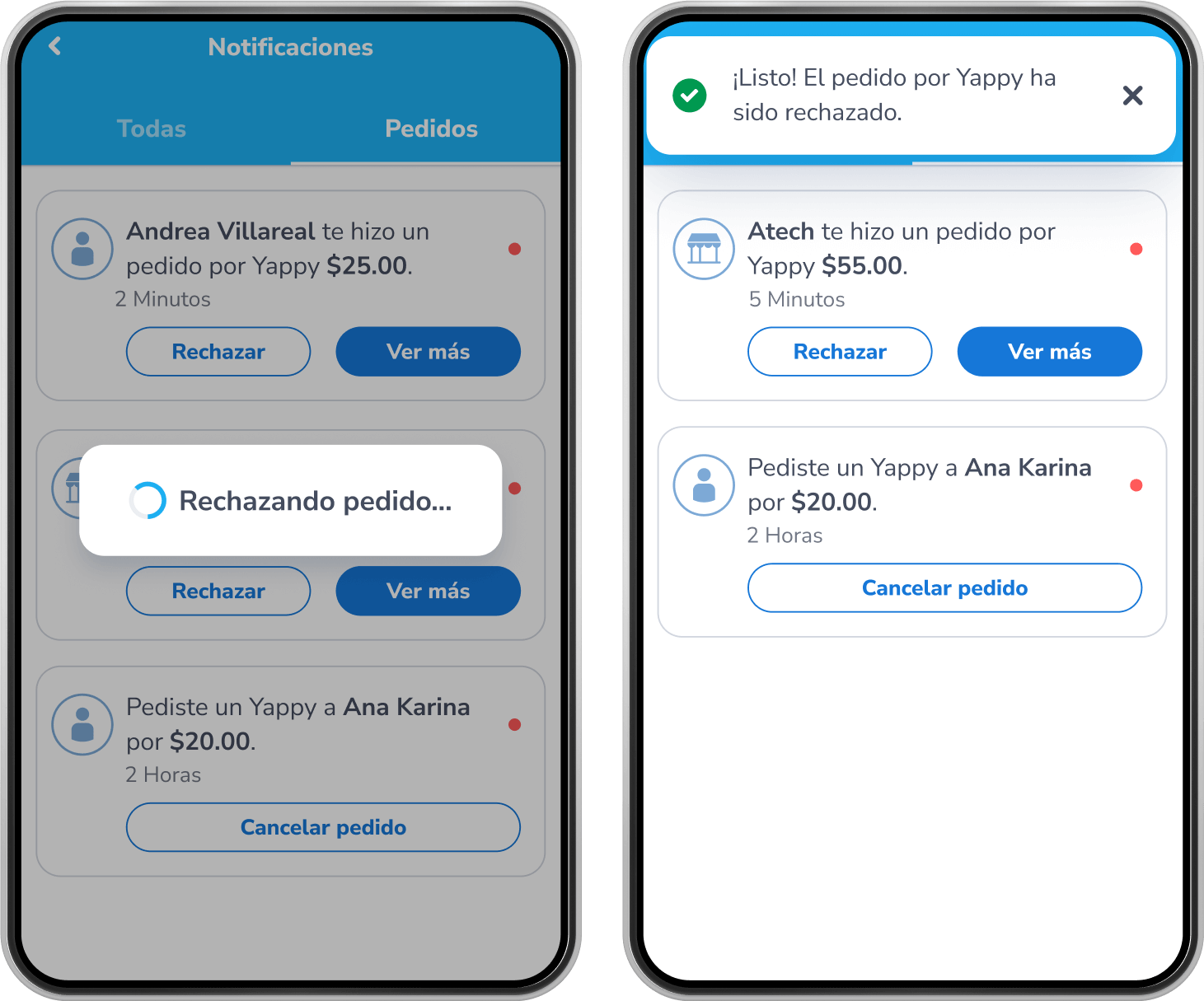 Cómo aceptar o rechazar un pedido pendiente en Yappy App