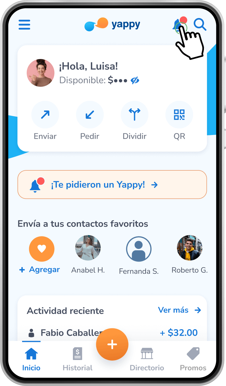 En la pantalla de inicio, presiona la campana de notificaciones que está al lado del buscador. Si tienes un pedido que te han realizado aparecerá con un círculo rojo.
