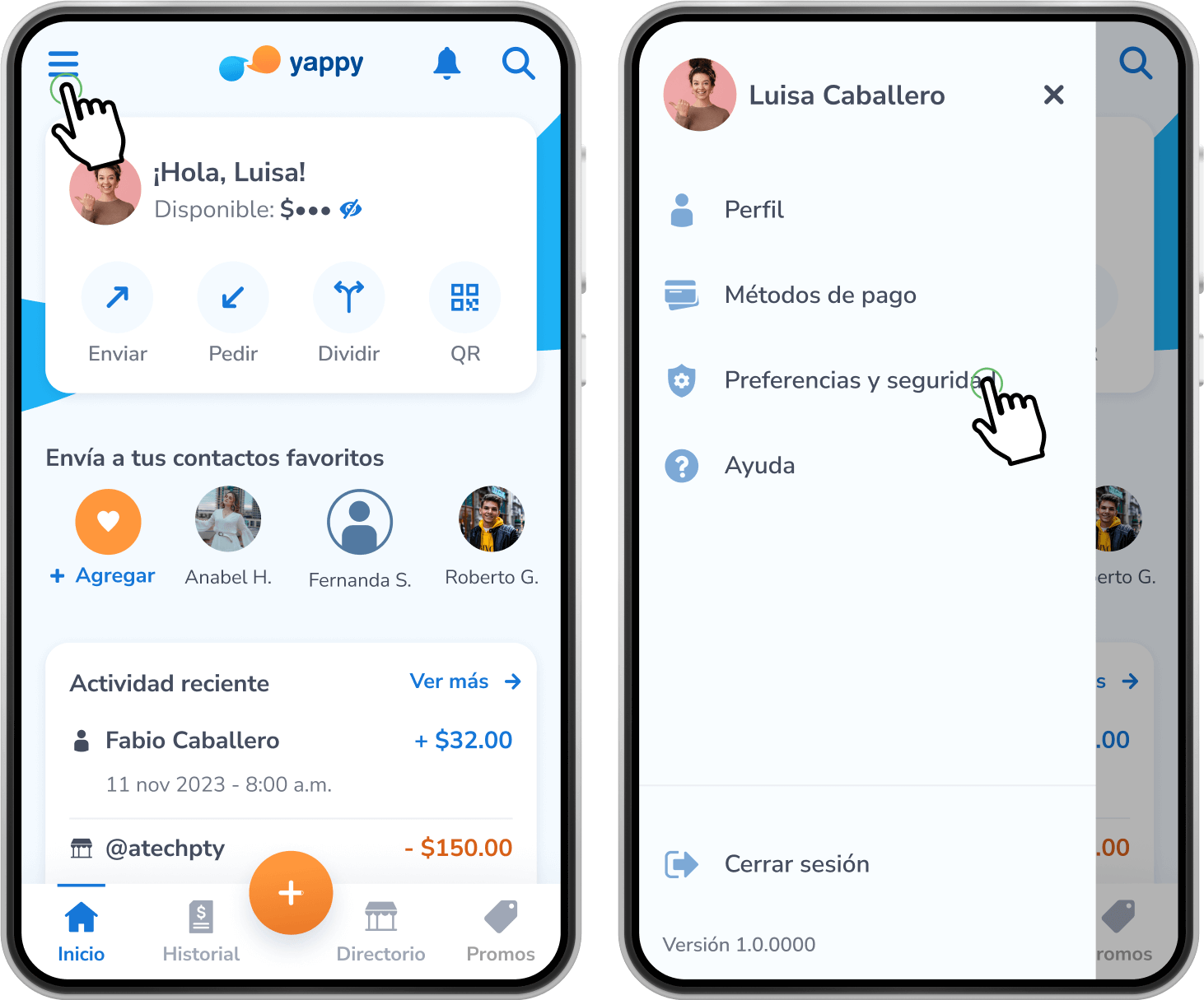En el menú ubicado en la esquina superior izquierda toca Preferencias y seguridad.