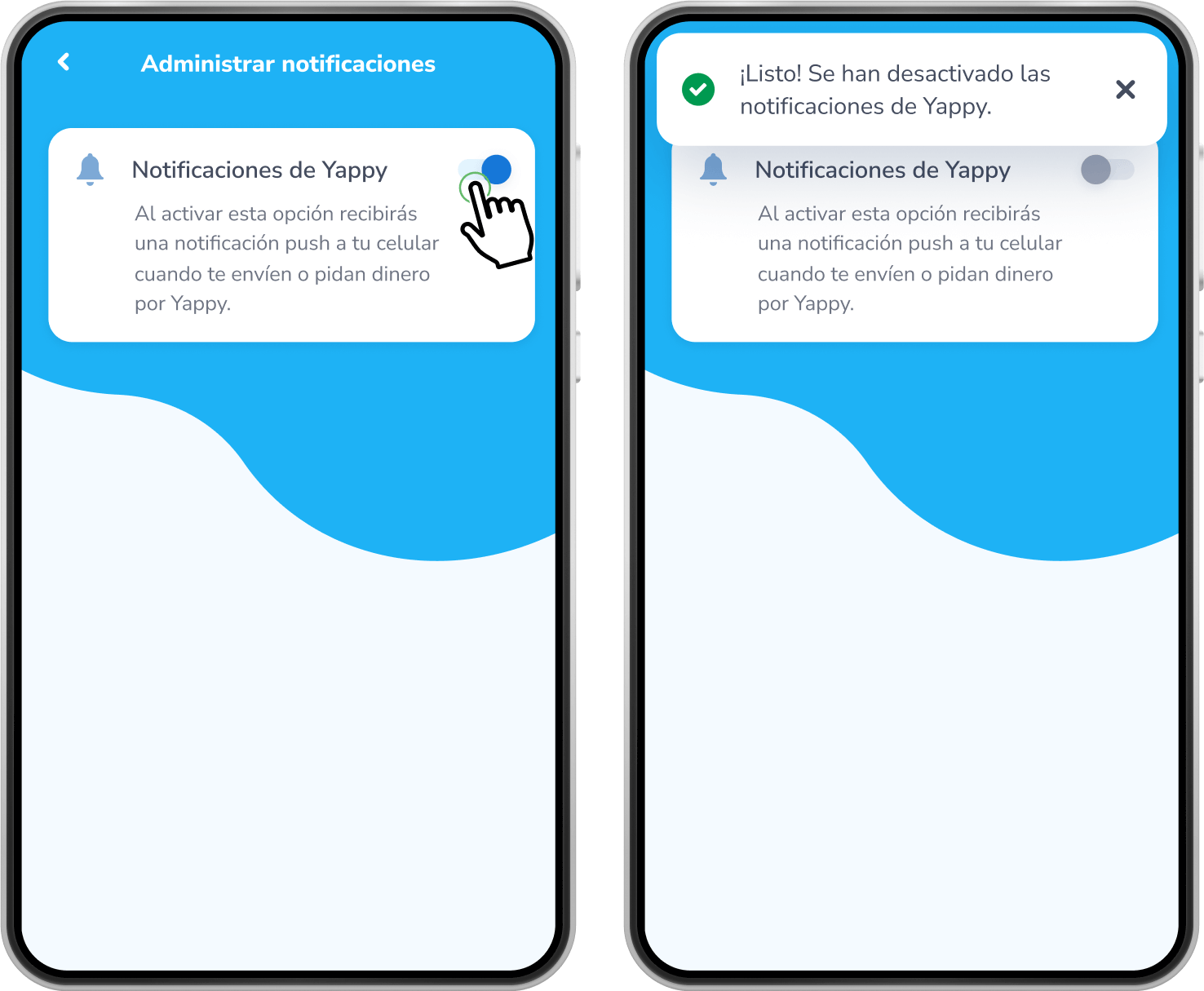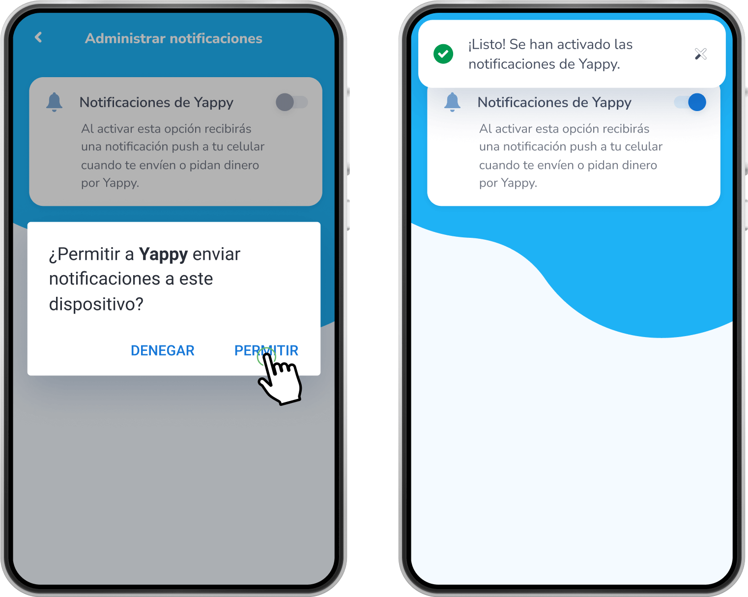 Te pediremos permiso para activar las notificaciones de Yappy en tu dispositivo, presiona permitir para terminar de activarlas.
