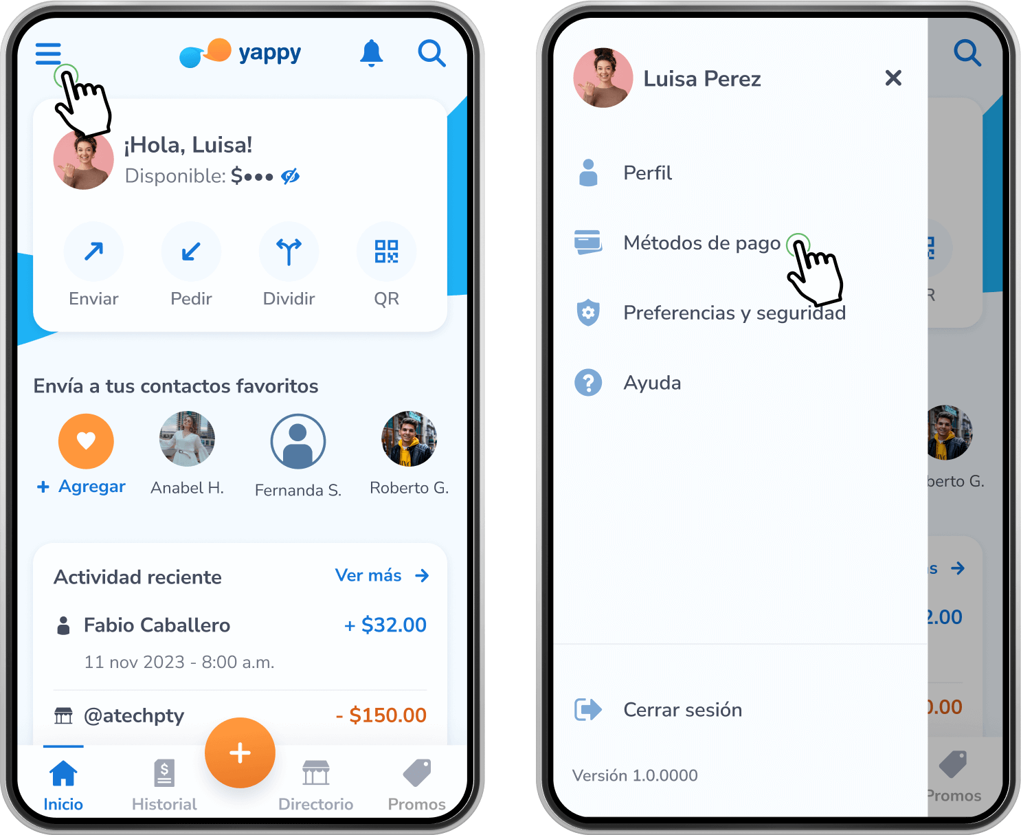 En el menú ubicado en la esquina superior izquierda toca Métodos de pago.
