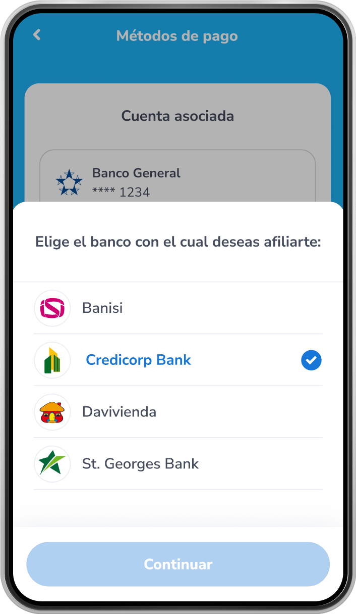 Verás un listado con los bancos disponibles, elige el que quieres agregar y toca Siguiente.