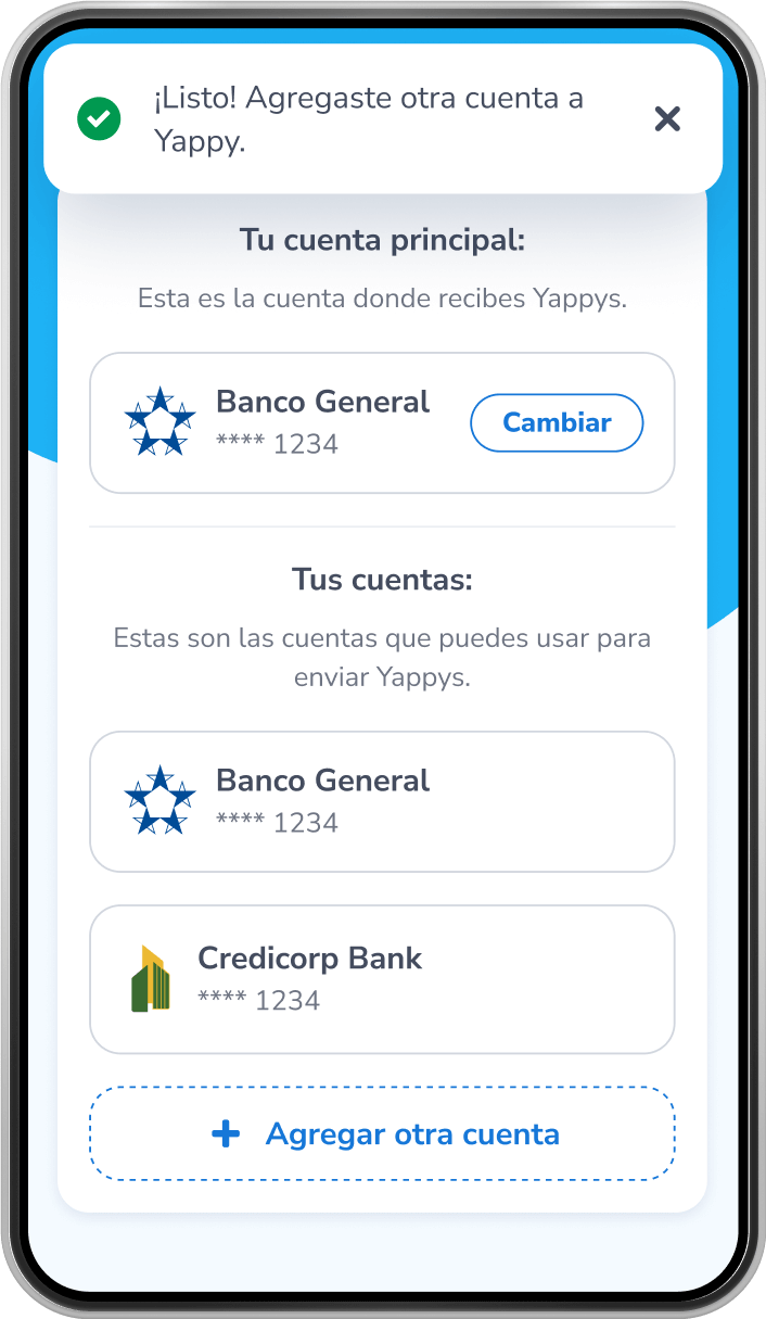 ¡Listo! Agregaste otra cuenta a Yappy