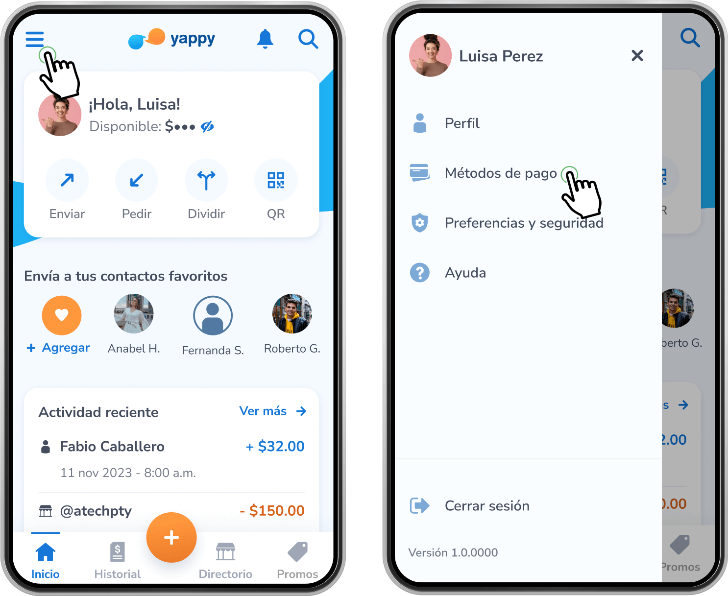 En el menú ubicado en la esquina superior izquierda toca Métodos de pago.