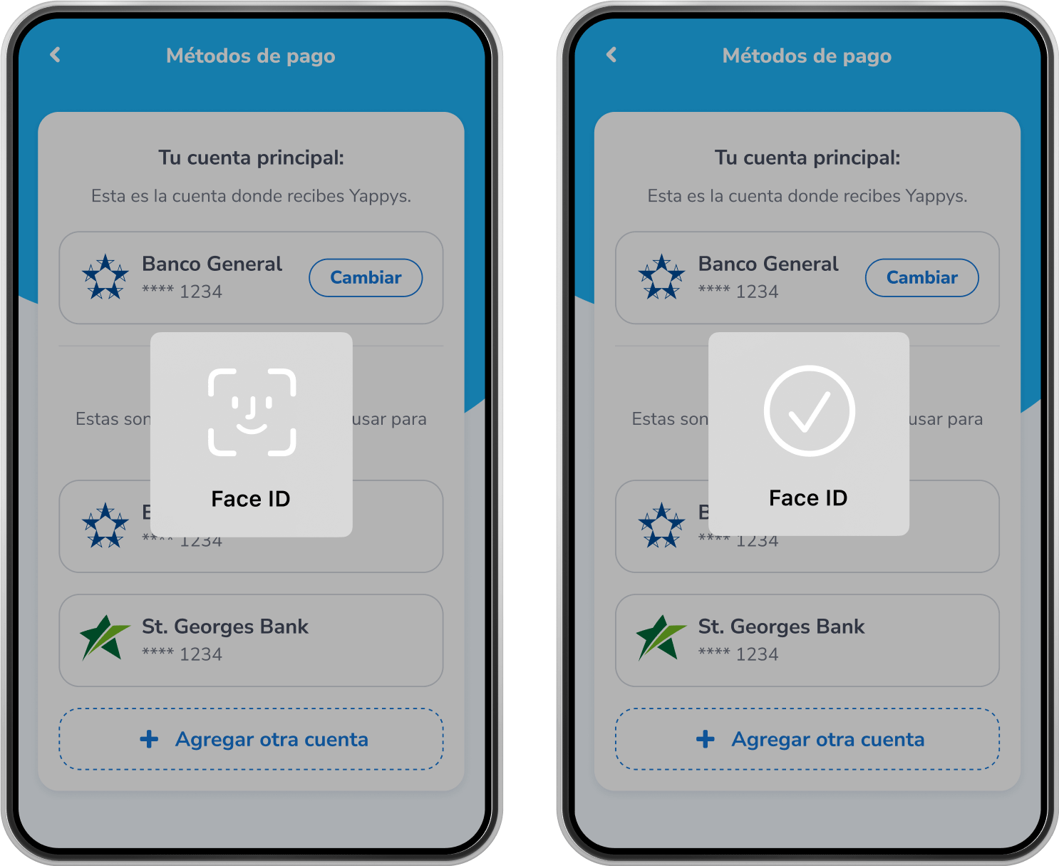 Al tocar Cambiar, se te mostrarán las opciones de cuentas que tienes conectadas en Yappy. Elige la cuenta que quieres usar como tu cuenta principal y toca Siguiente.