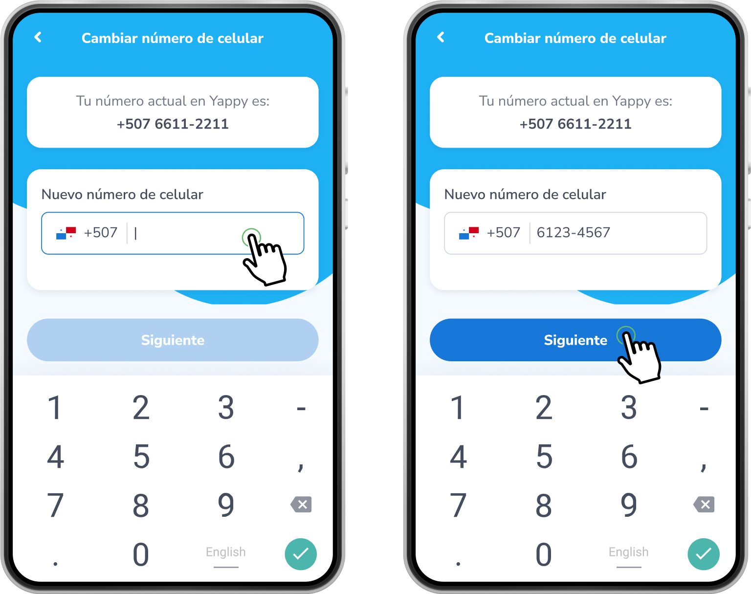 Escribe tu nuevo número de celular que deseas vincular a Yappy App y presiona Siguiente.