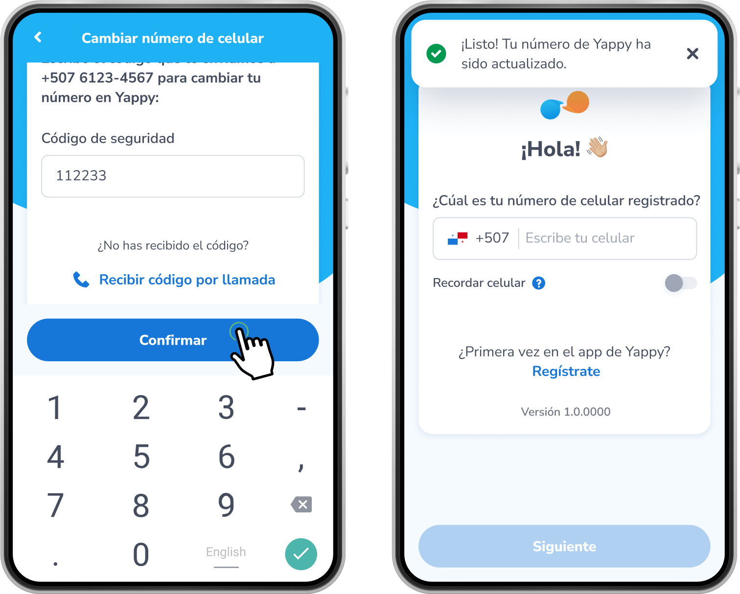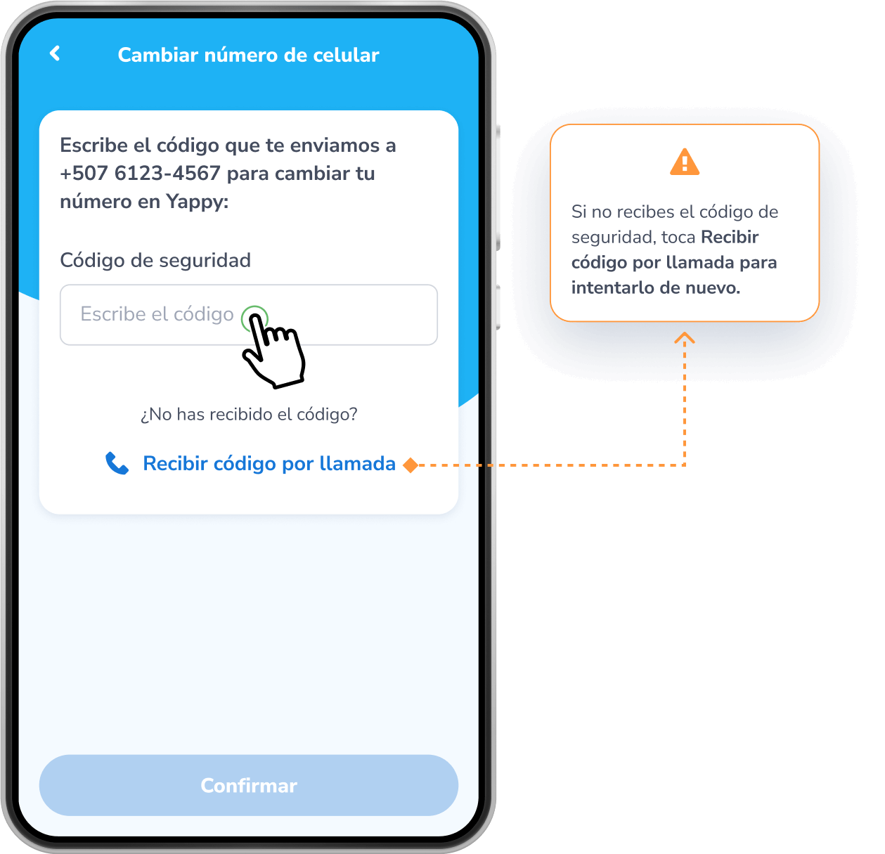 Finalmente, escribe el código de seguridad que te enviamos a tu número de celular nuevo y toca Confirmar para terminar de cambiar tu número de celular.