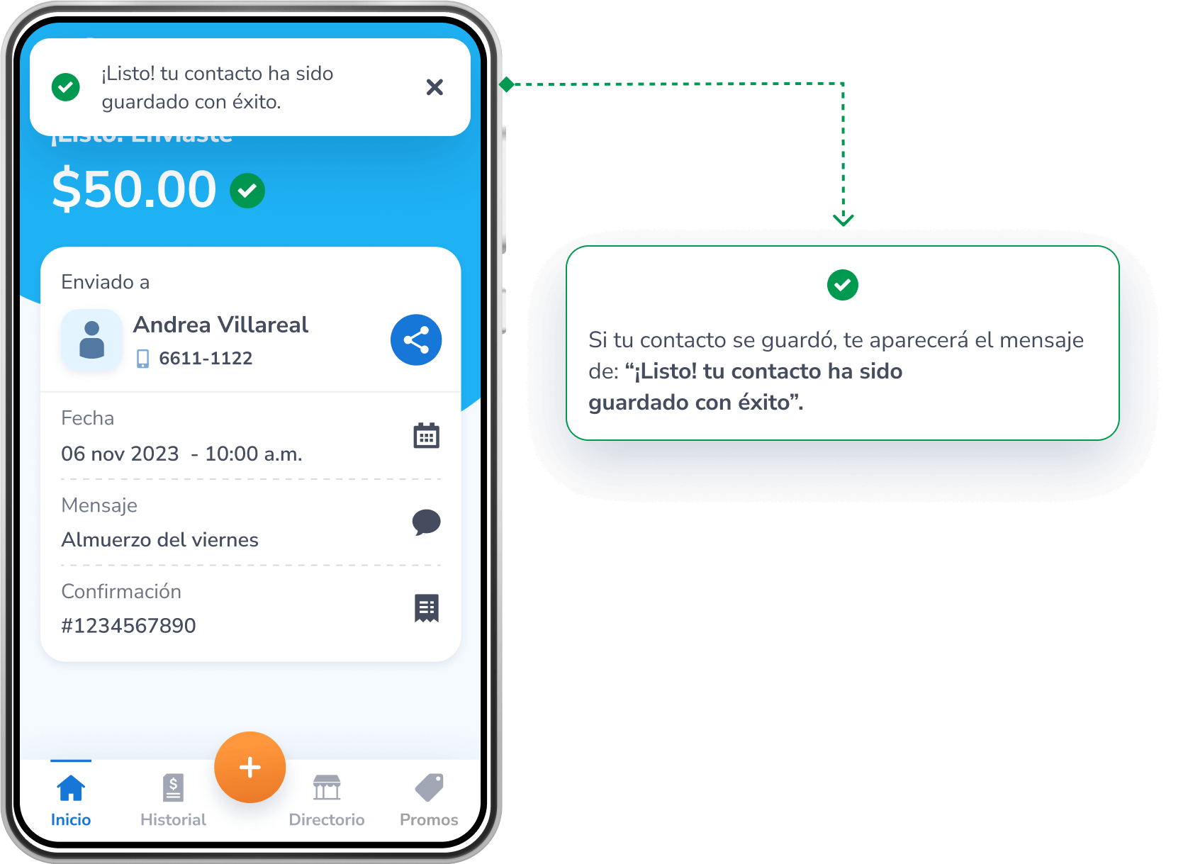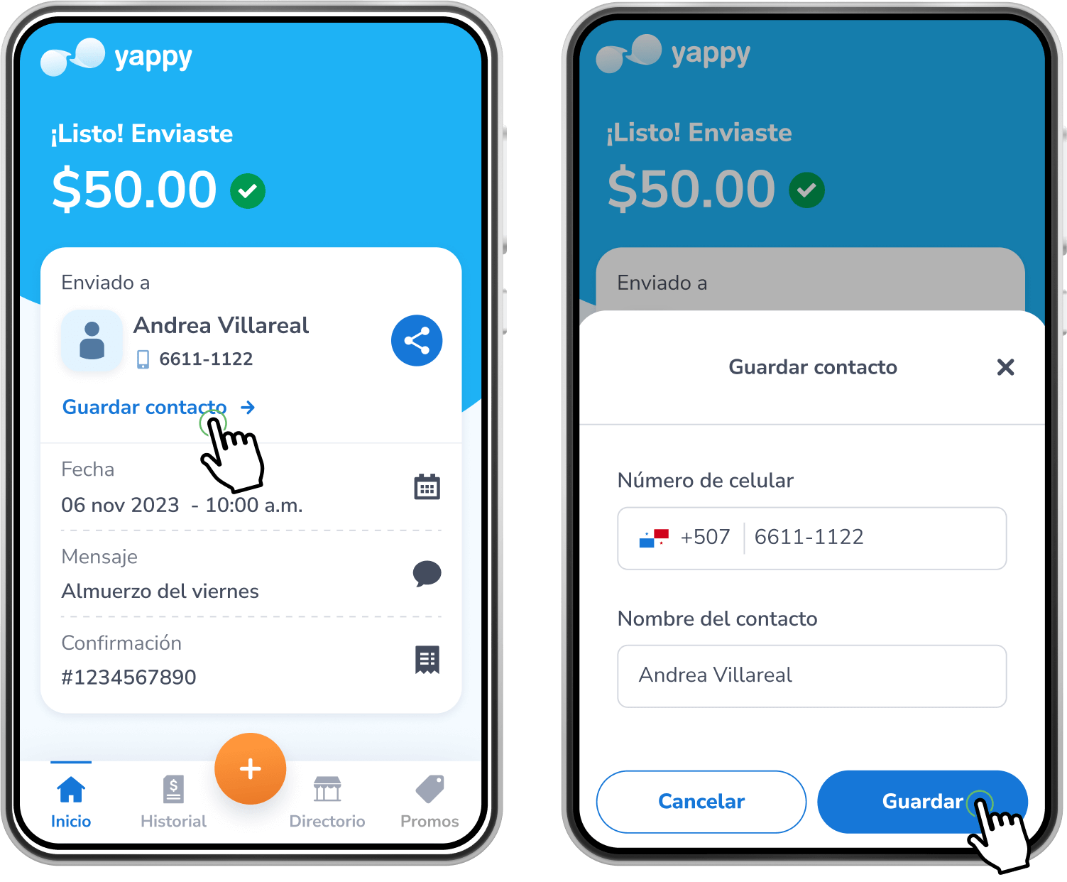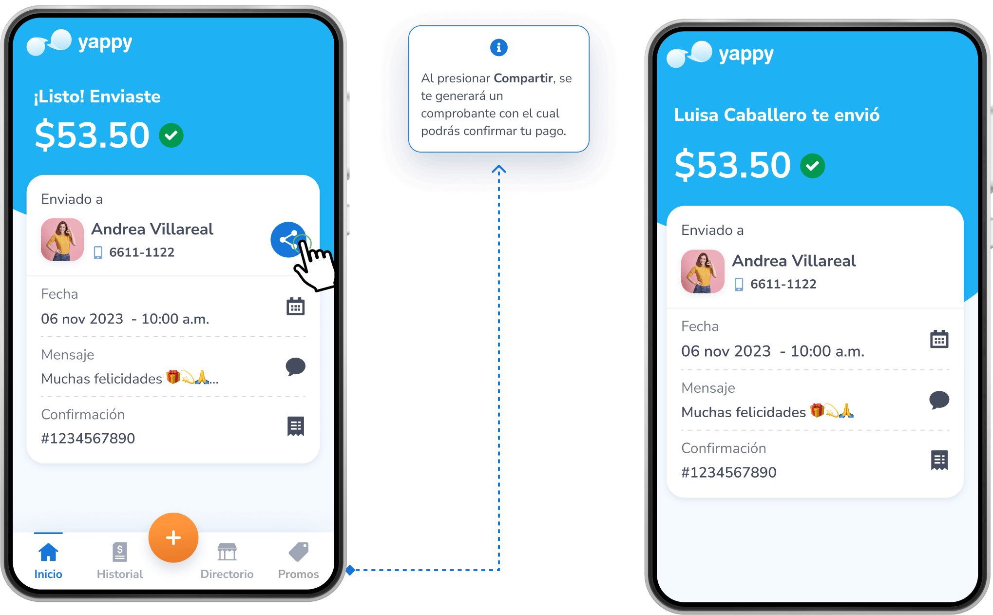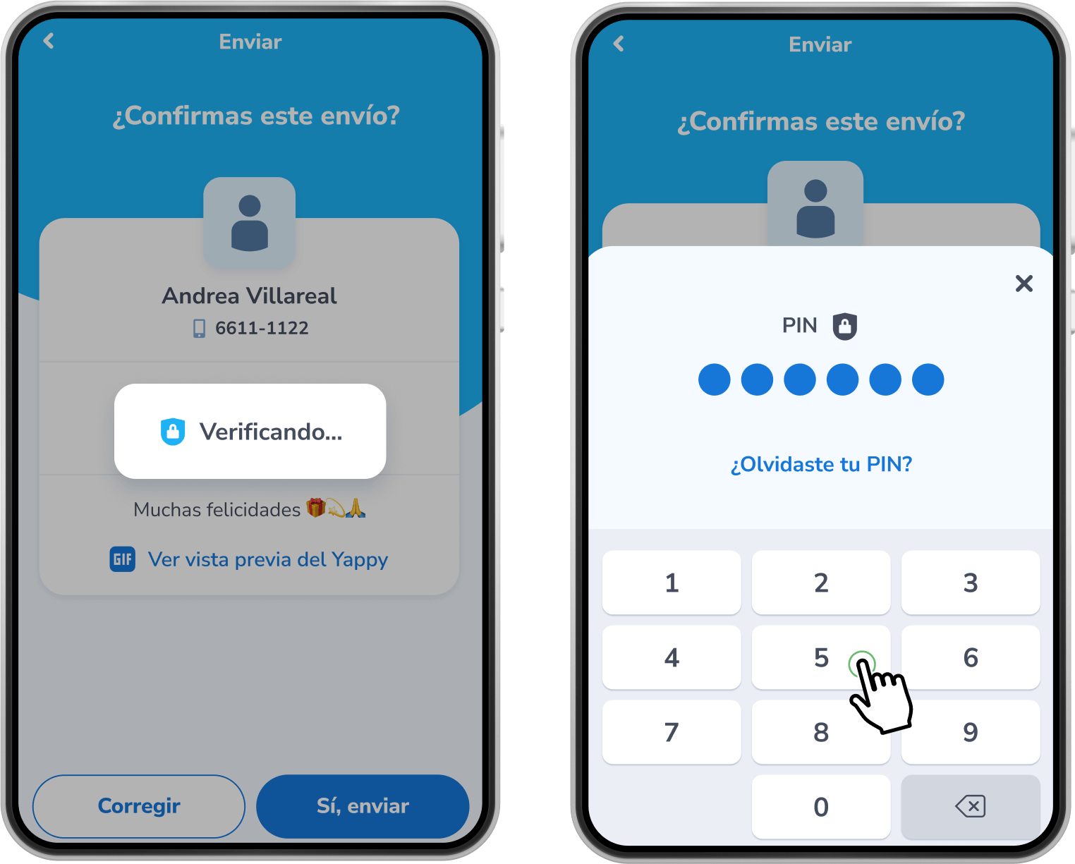 Luego de validar que sí eres tú, el Yappy será enviado con éxito al contacto seleccionado.
