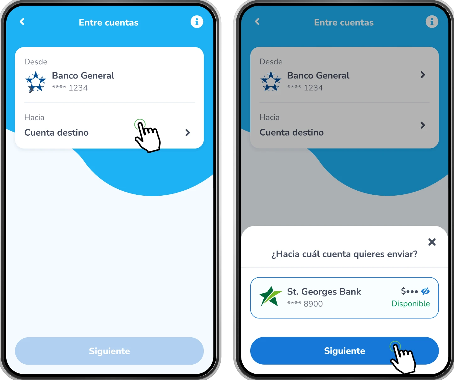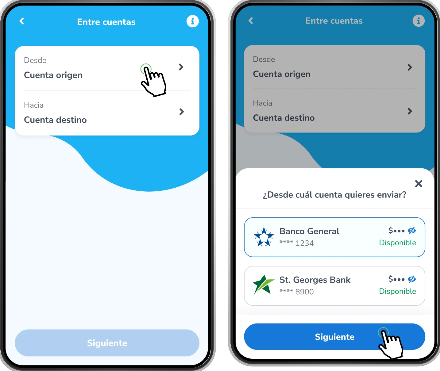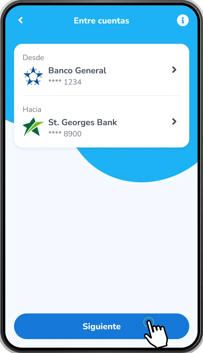 Verás las cuentas que seleccionaste como Cuenta origen y Cuenta destino