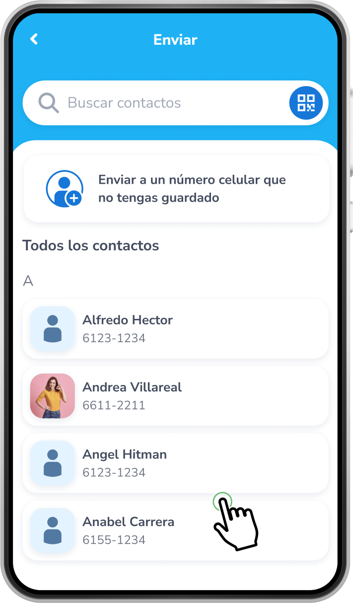 Al seleccionar el contacto deseado, validaremos si este tiene o no Yappy.