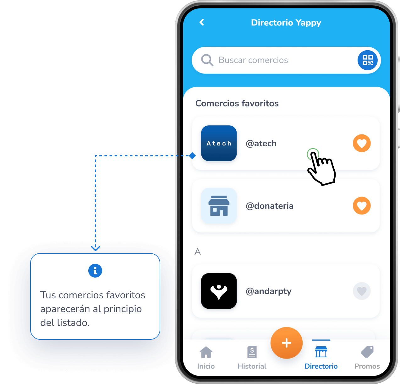 Verás el listado de comercios con Yappy. Utilizando el buscador, podrás encontrar y elegir el comercio al cual le quieres pagar.