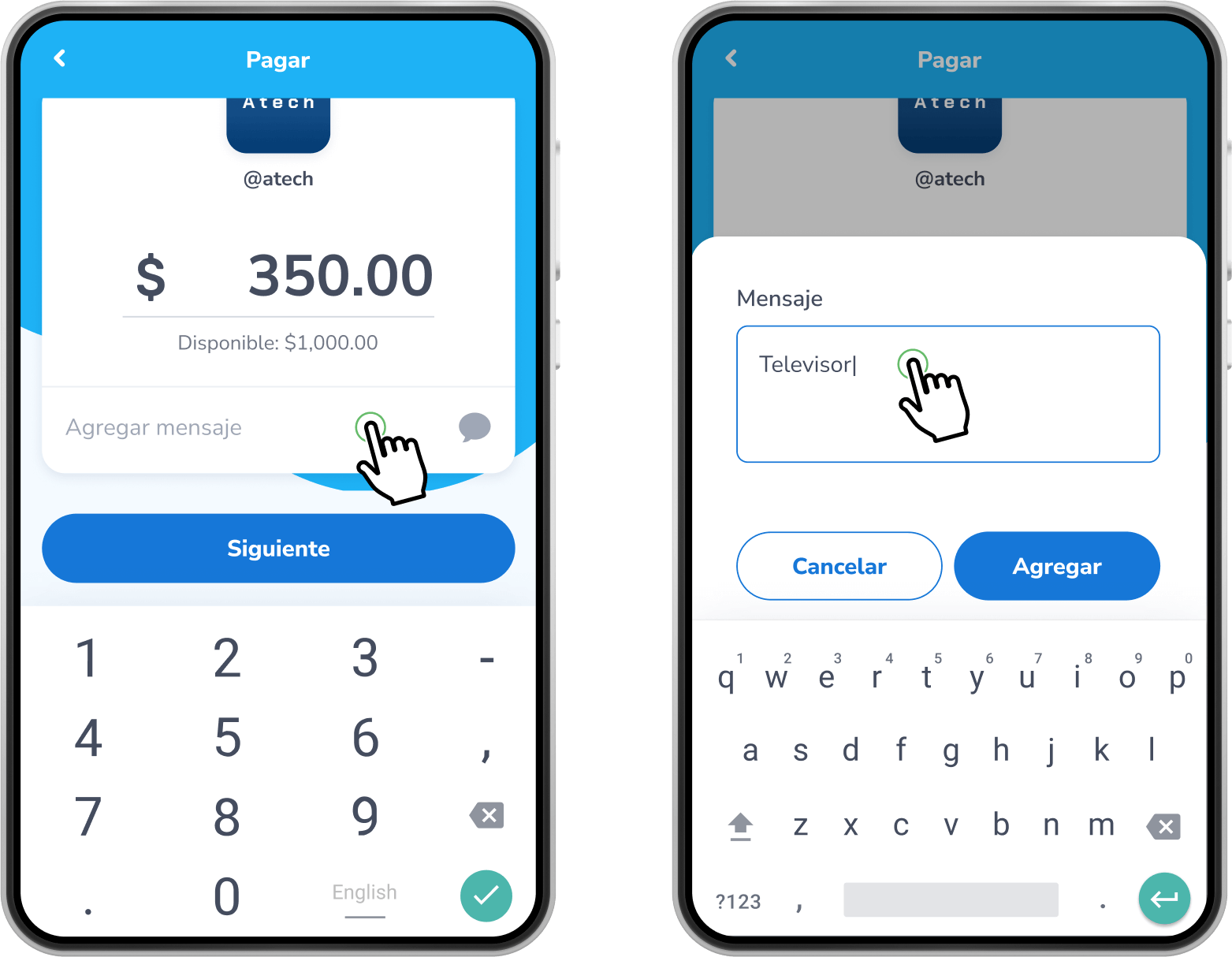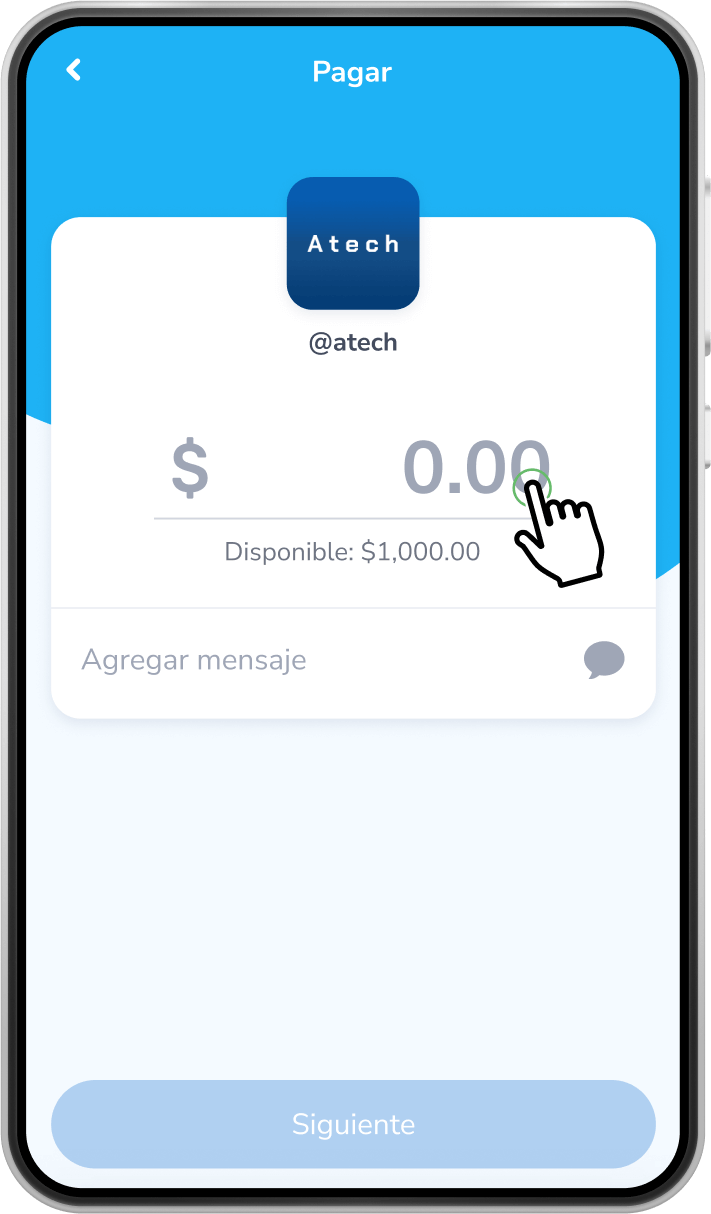 Luego de agregar el monto, podrás escribir un mensaje opcional. Al terminar de escribir tu mensaje, toca Agregar y luego Siguiente para continuar.