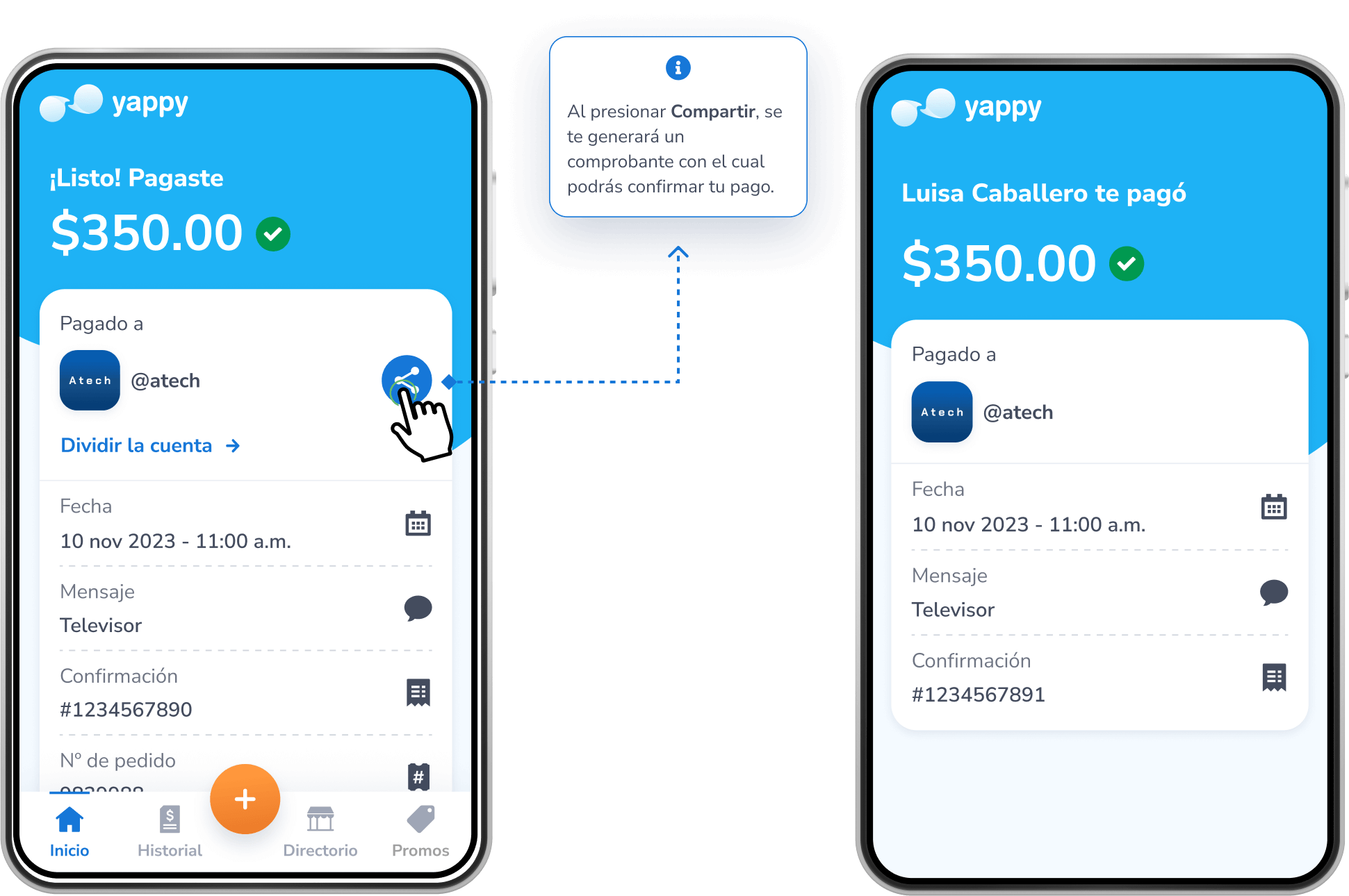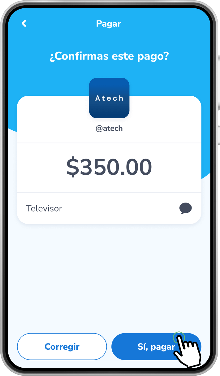 Revisa que la información es correcta y toca Sí, pagar para confirmar el envío de tu Yappy.
