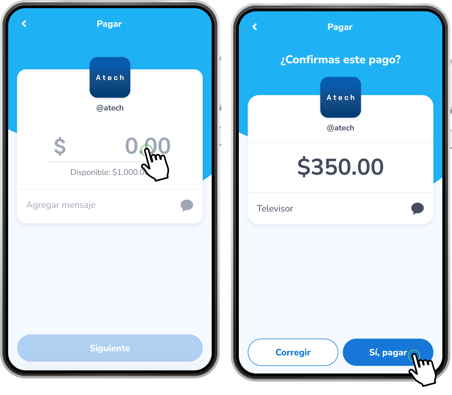 Si el QR es válido, debes escribir el monto que deseas enviar, un mensaje (opcional) y tocar Sí, pagar para confirmar tu pago.