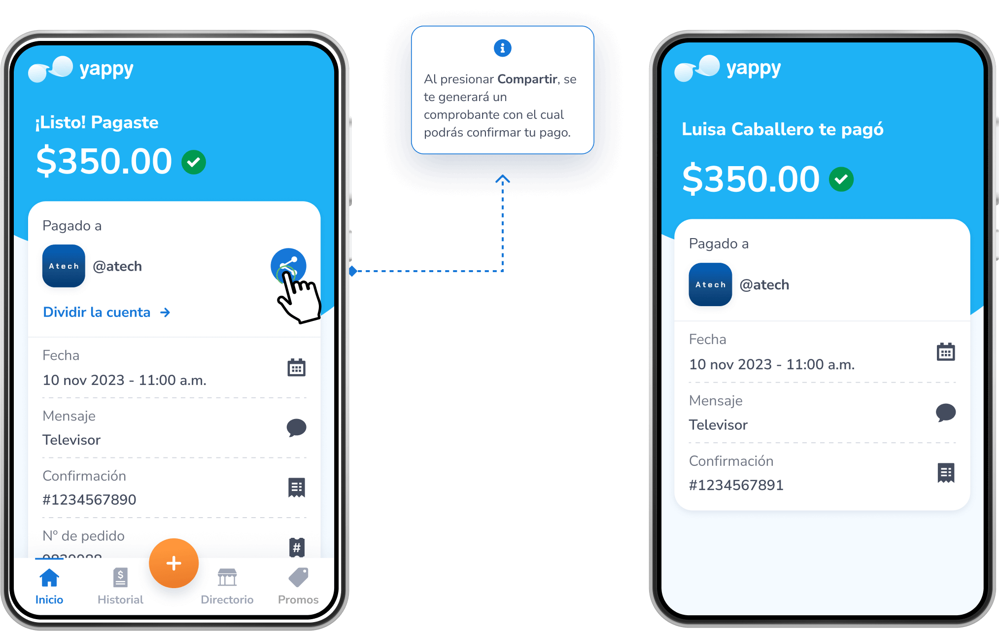 Luego de validar que sí eres tú, el Yappy será enviado con éxito al comercio seleccionado.