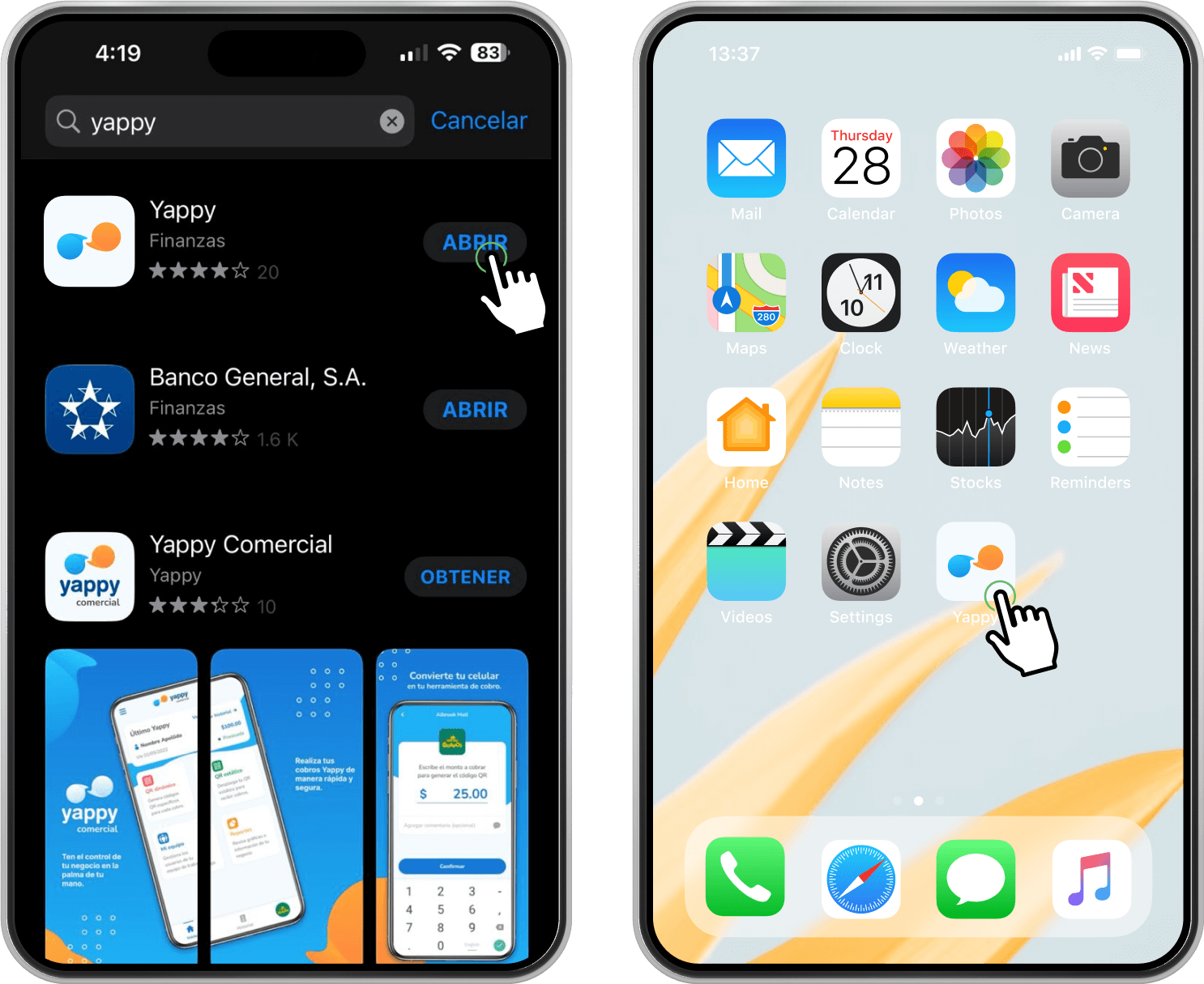En la tienda de apps de tu celular (App Store, Play Store o AppGallery) busca Yappy y descarga la aplicación.