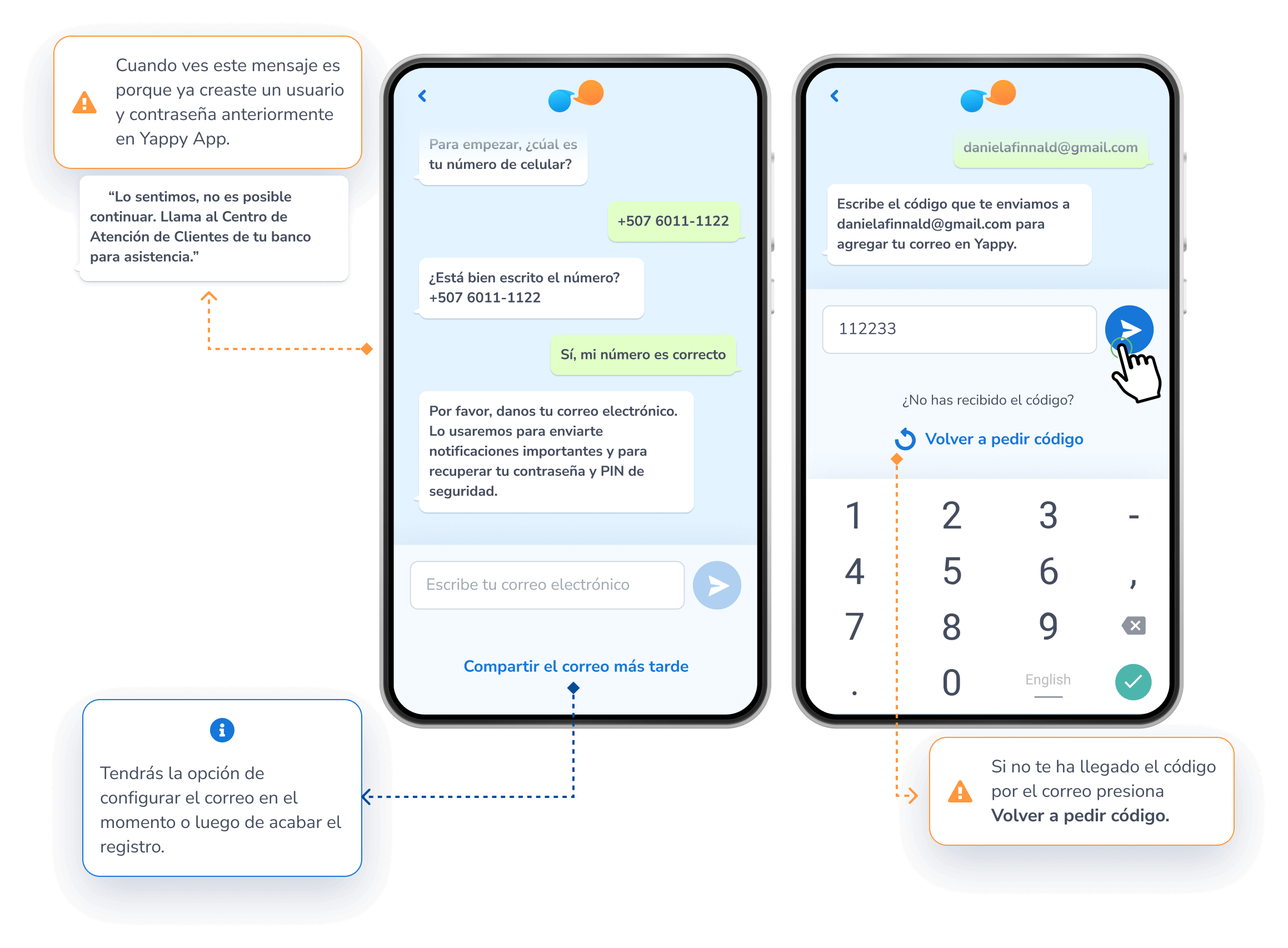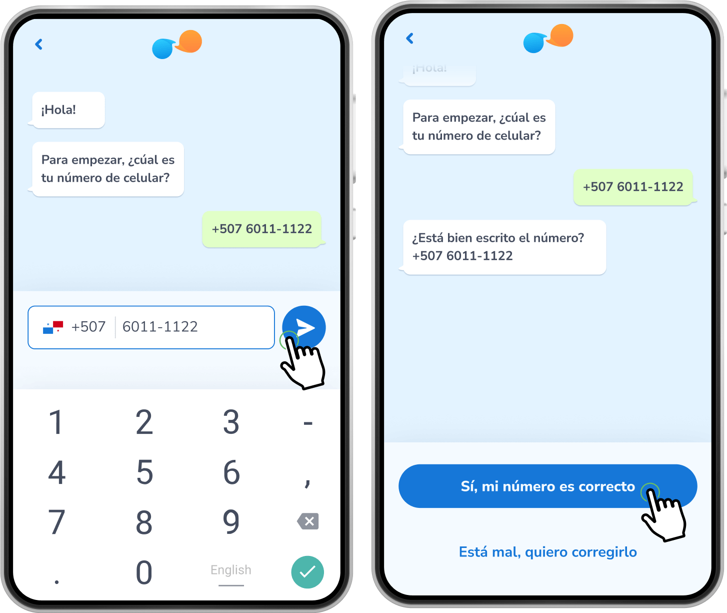 Escribe el número de celular que tengas registrado actualmente en Yappy y confirma que está correctamente escrito.