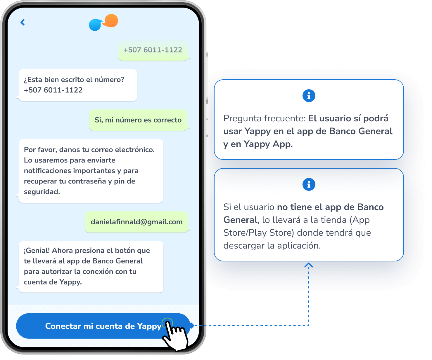 Toca Conectar mi cuenta de Yappy y te llevará a la pantalla de inicio de sesión del app de Banco General.