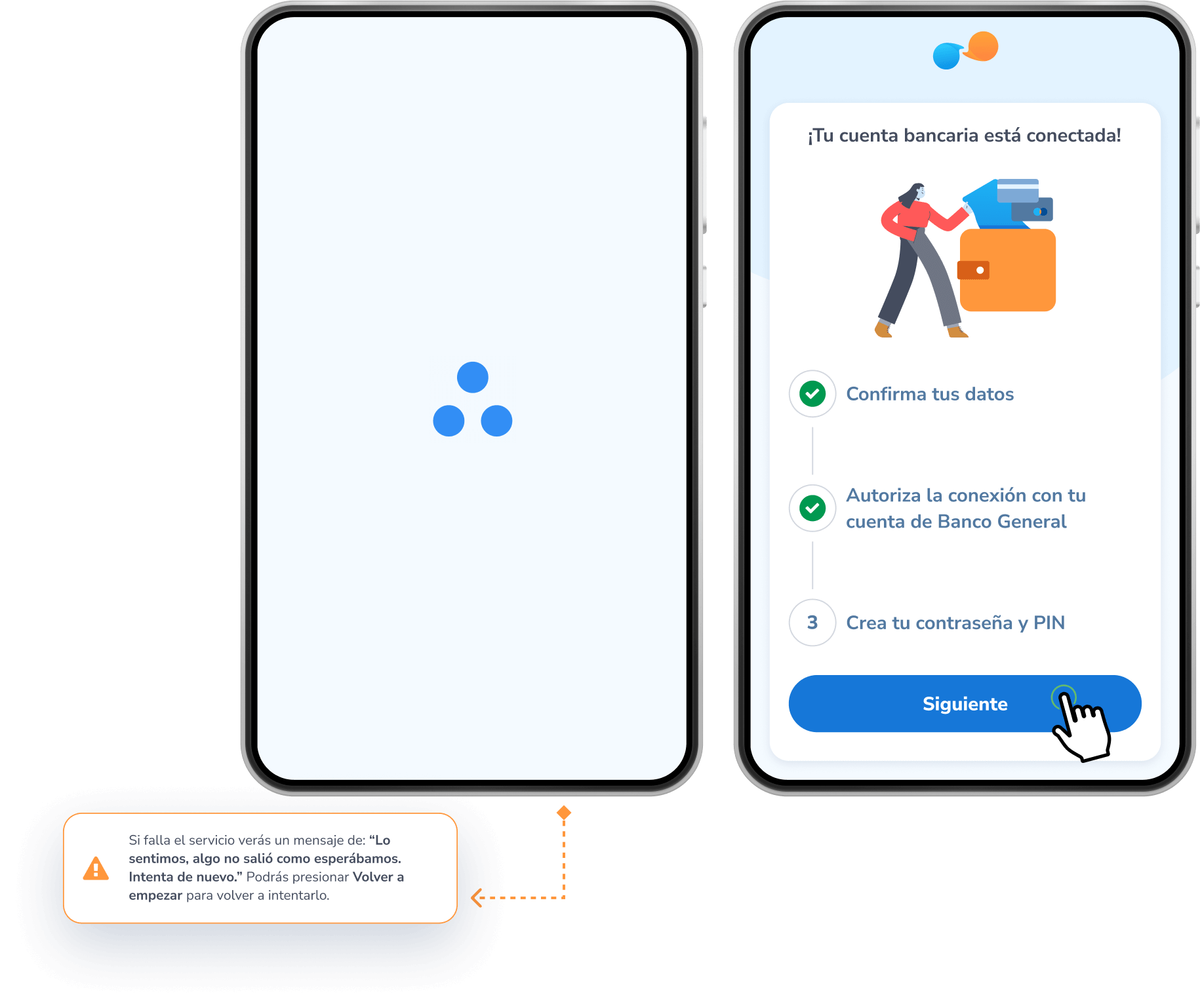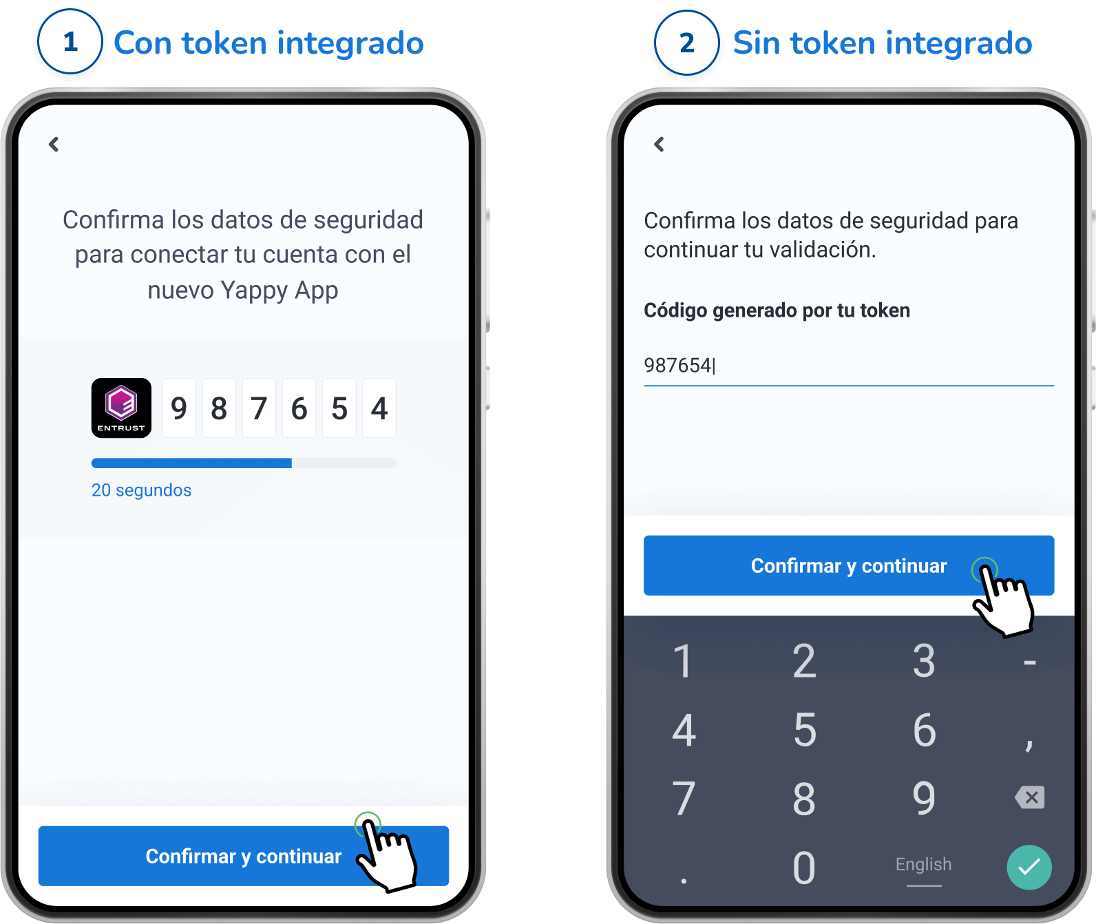 Al autorizar la conexión de tu cuenta bancaria deberás confirmar los datos de seguridad de tu token presionando Confirmar y continuar. Luego regresarás a Yappy App para completar tu registro.