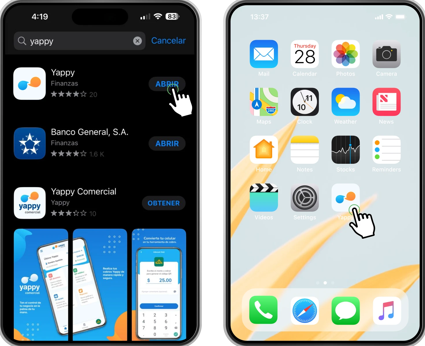 En la tienda de apps de tu celular (App Store, Play Store o AppGallery) busca Yappy y descarga la aplicación.
