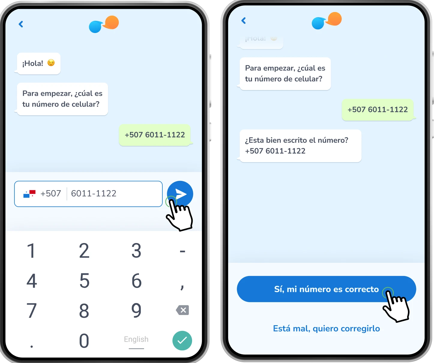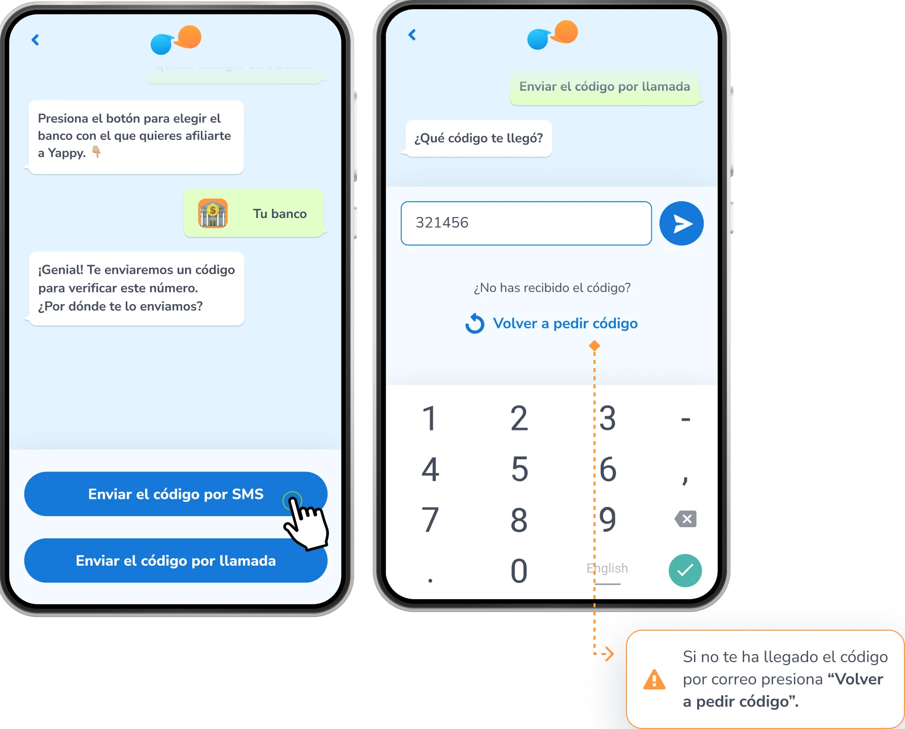 El código de verificación te llegará a tu número por SMS o llamada para validar que eres tú.