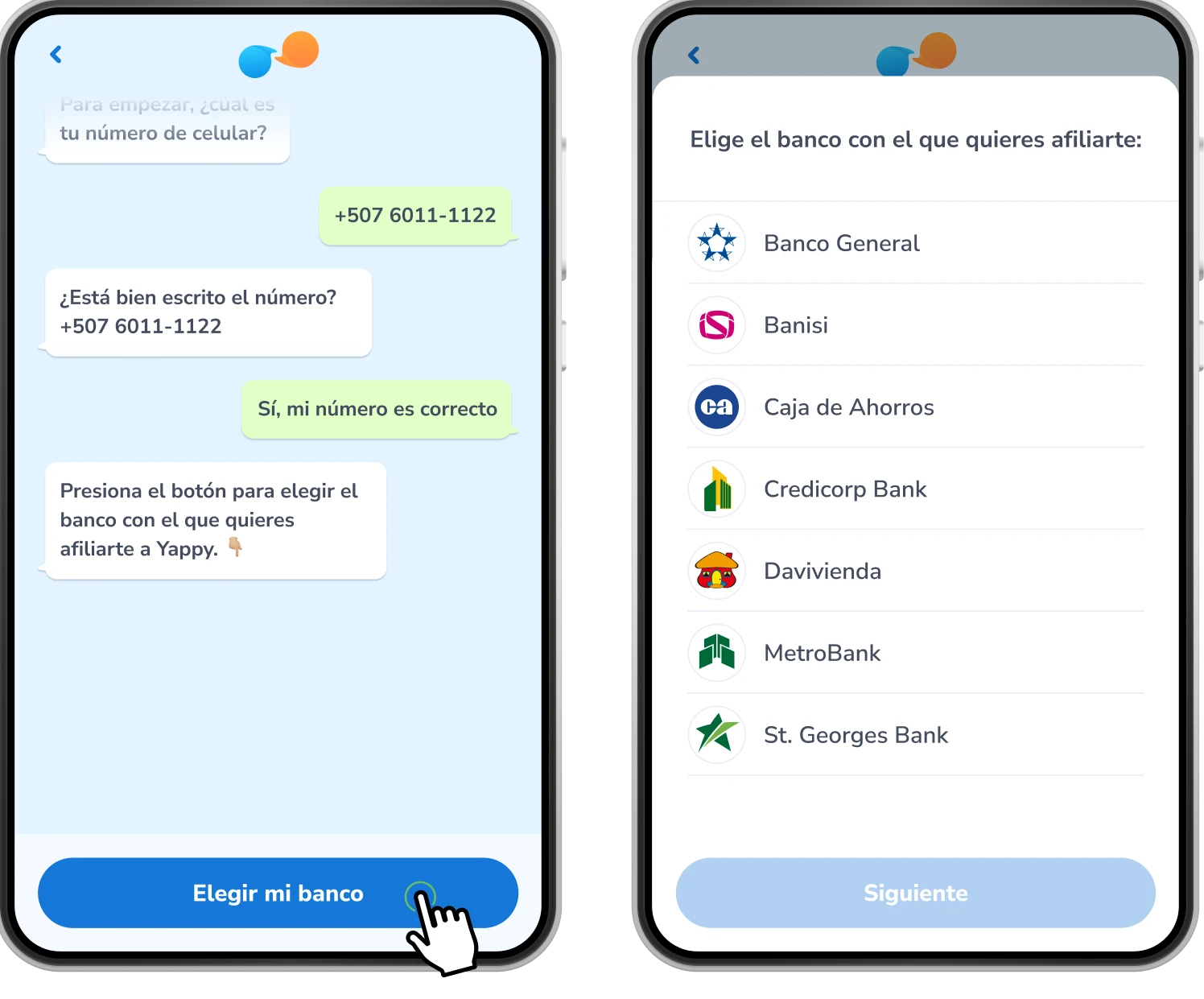 Ya estás afiliado a Yappy con la cuenta del banco que seleccionaste.