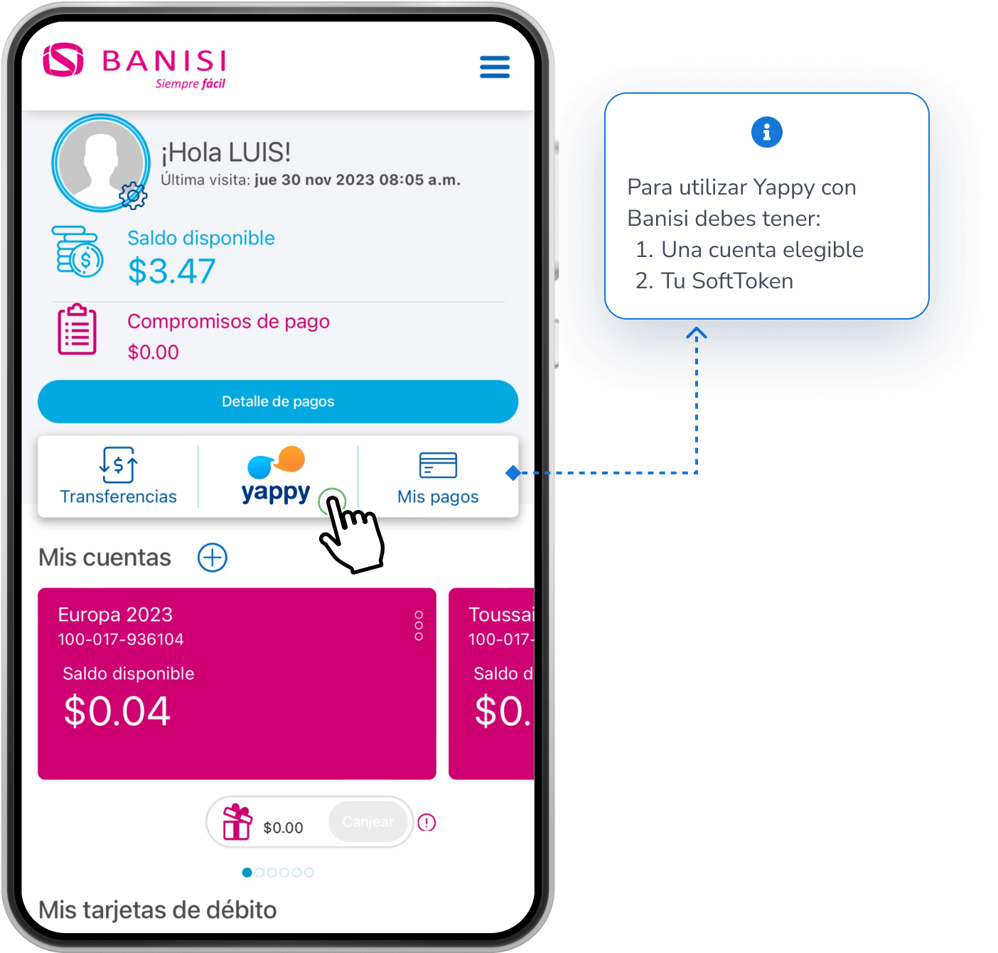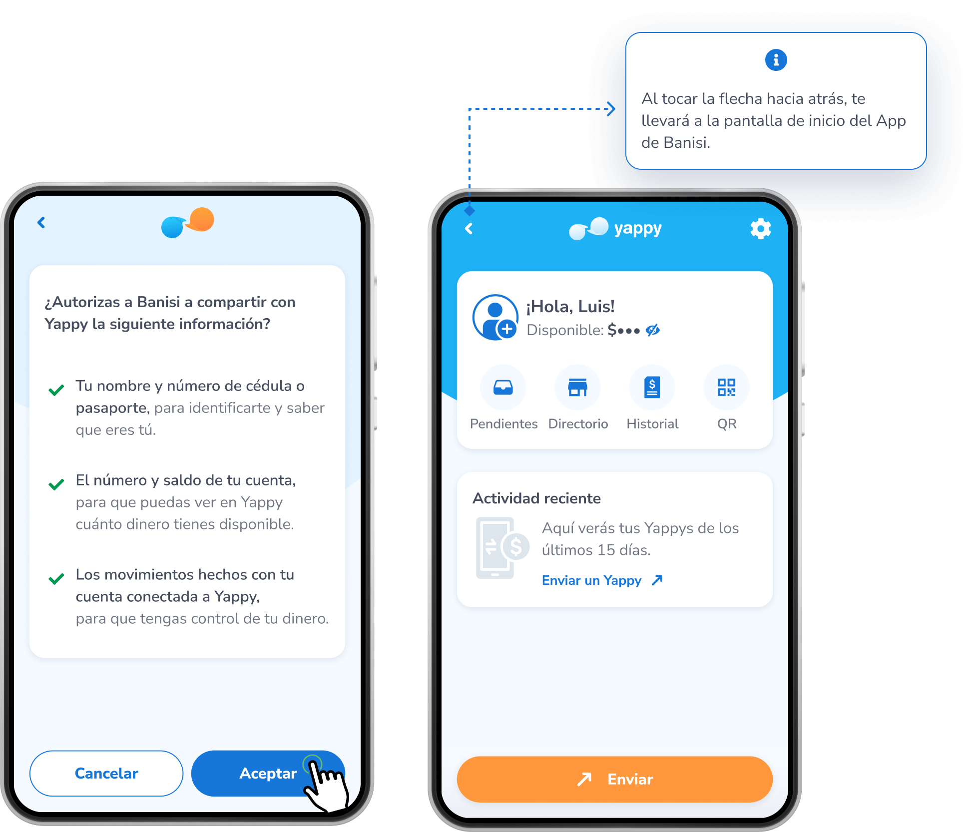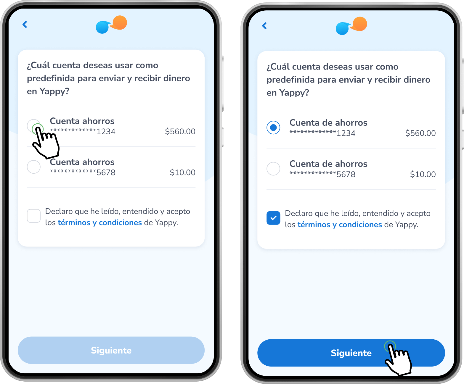 Elige la cuenta bancaria que deseas vincular a Yappy, esta será la cuenta que usarás para enviar y recibir dinero con Yappy.